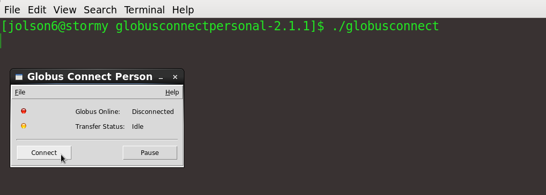 Open a terminal and go to the globusconnect folder
