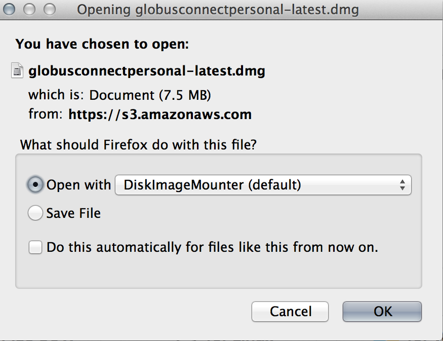 You will be prompted by macOS to choose what to do with the file, select Open With Disk Image Mounter, it should be the default program.